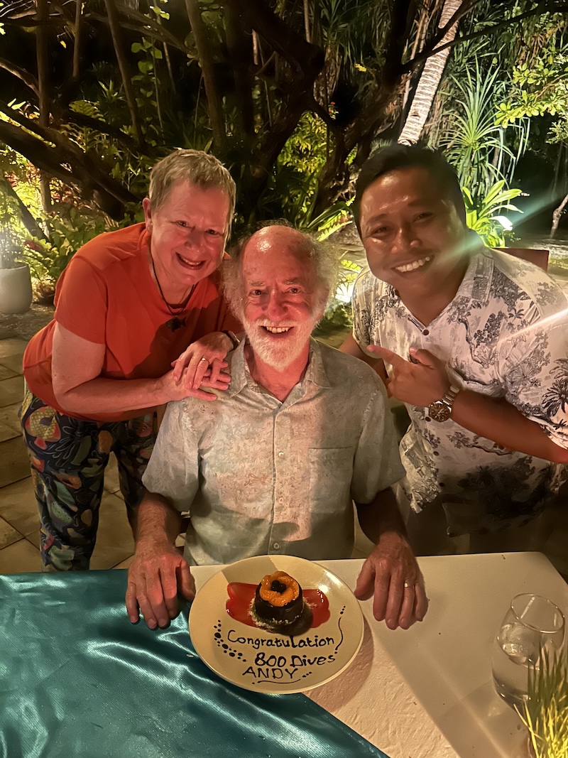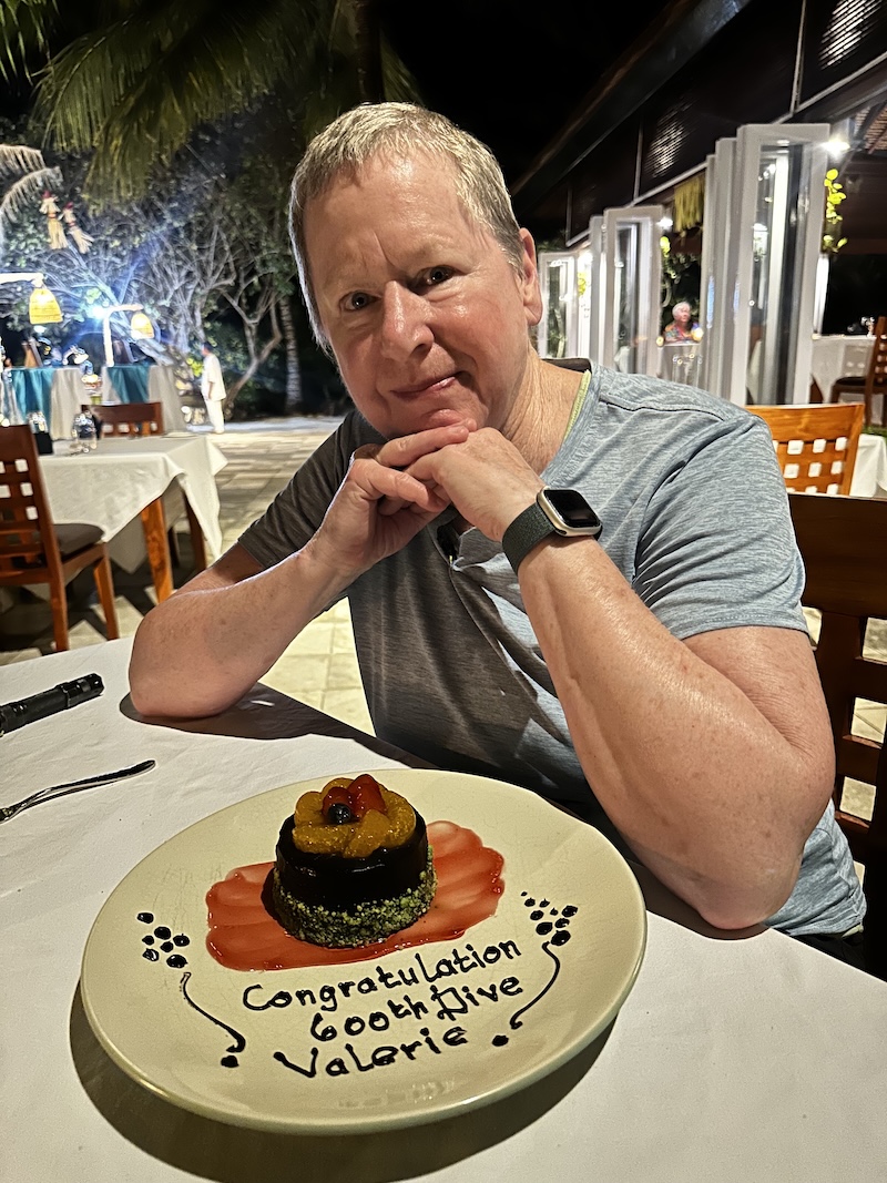 Valerie and I both passed milestones while at Wakatobi and received delicious rewards.